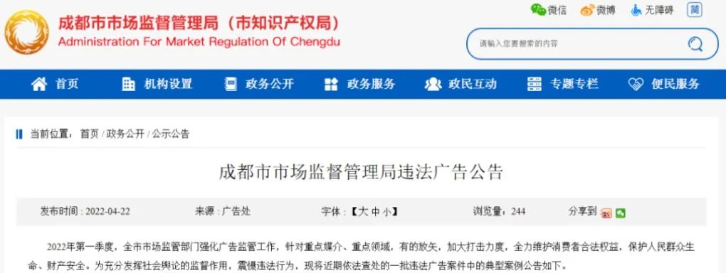 4月22日,成都市市場監督管理局發布10起違法廣告典型案例,涉及跨境電商、教育培訓、醫療美容、房地產等領域 ...
